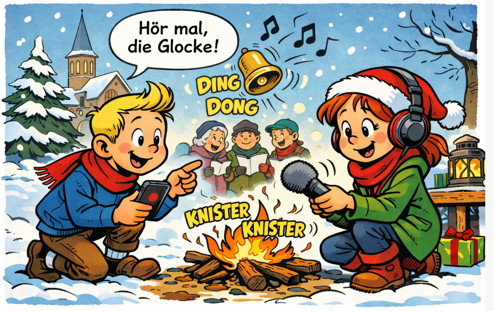 Findet zwei Geräusche, die für euch weihnachtlich klingen 🎅🎶. - Geräusche aufnehmen 📱🎤